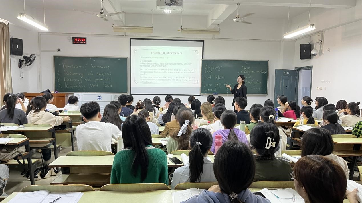 2022年11月10日上午第3节课,商务英语教研室王行舟老师在主校区A栋404教室成功举行了教学公开课,商务英语教研室杨永和教授及商务英语教研室全体老师到场进行了观摩学习和交流。