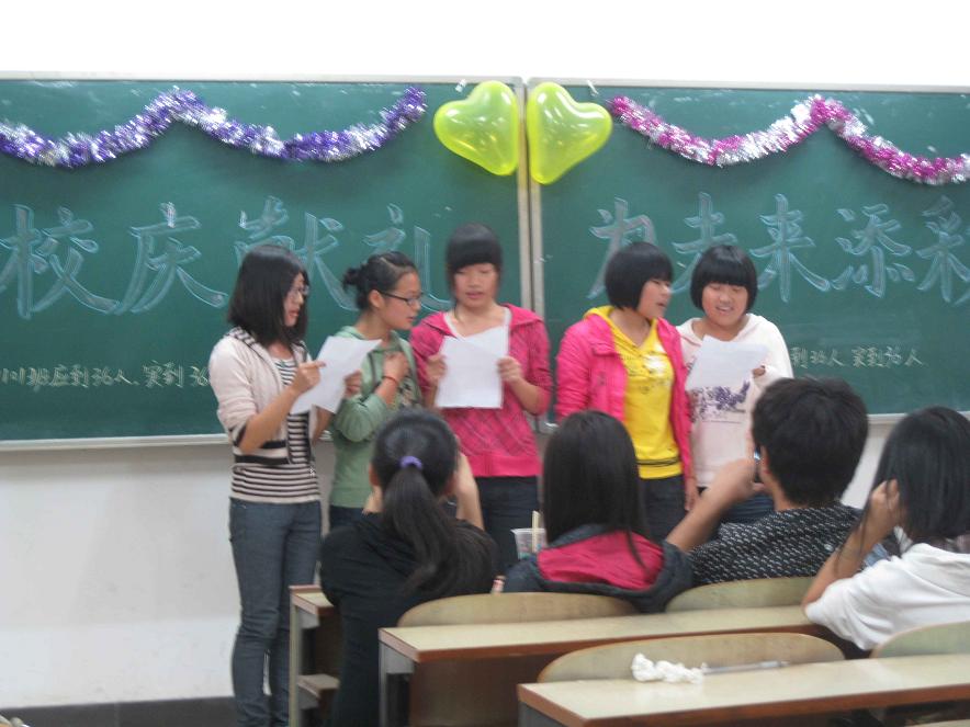 的校歌,以此来迎接学校的六十周年庆典;接着,小品、笑话、朗诵、舞蹈等节目掀起了一波又一波的高潮;最后,学生代表发言,号召大家要爱护校园,要有锲而不舍、敢为人先的精神,要认真学习,努力为湖工的发展做出贡献。