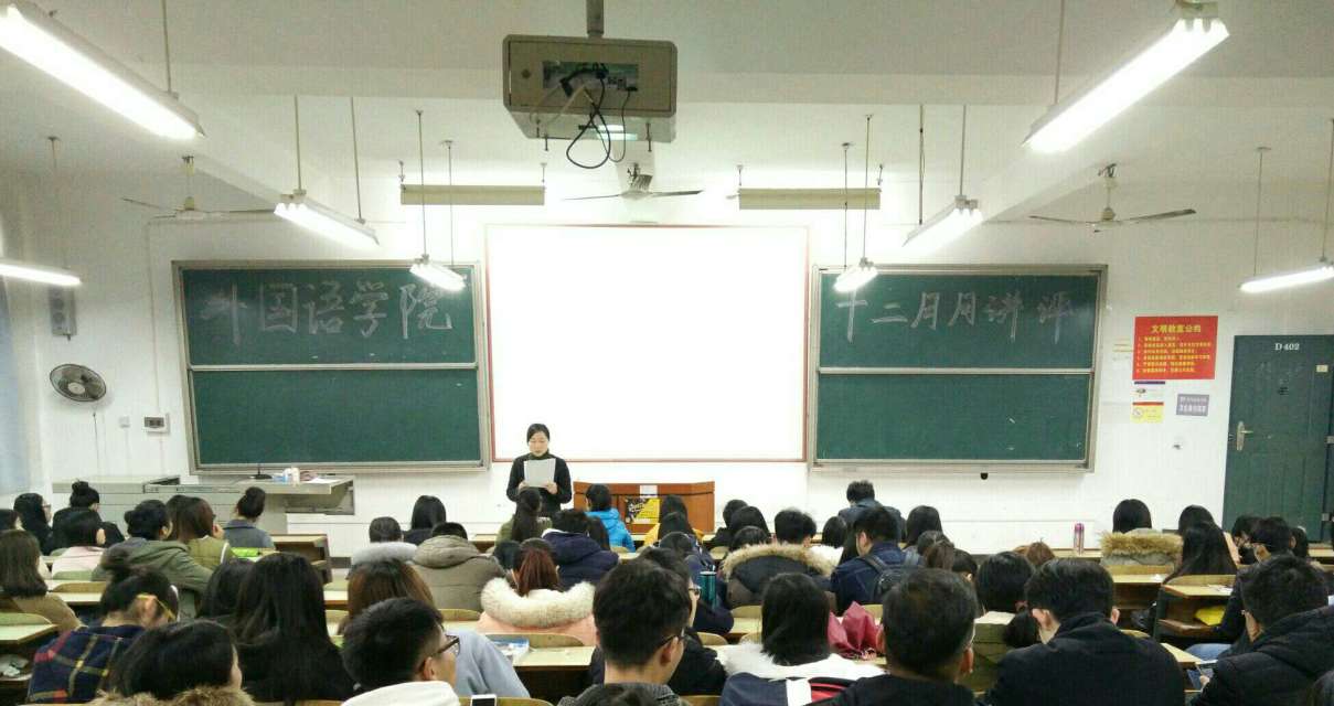在教学主楼D座402室召开了本学期第四次月讲评。讲评由张琼燕老师主持。大一至大四全体同学参加了此次会议。