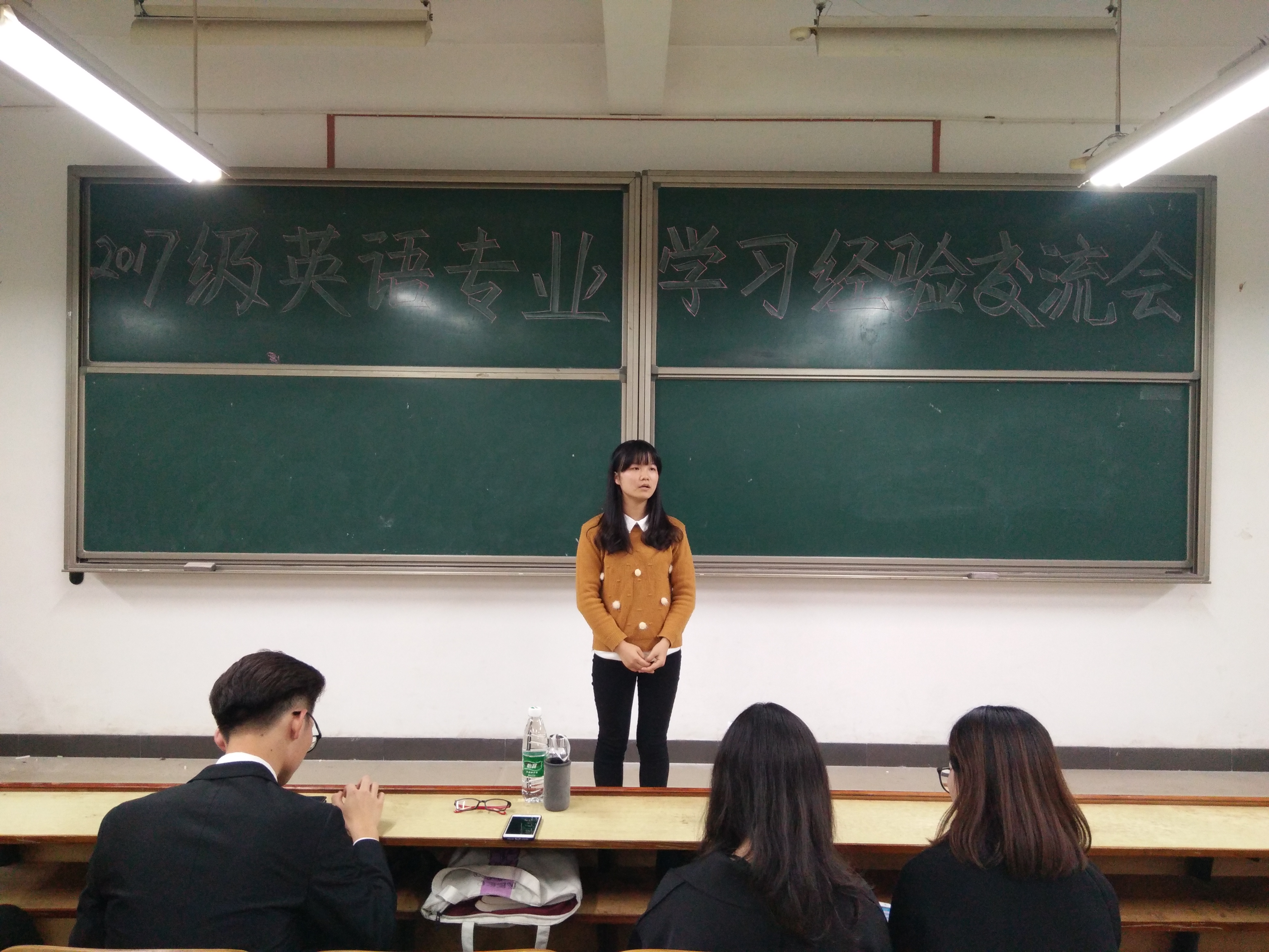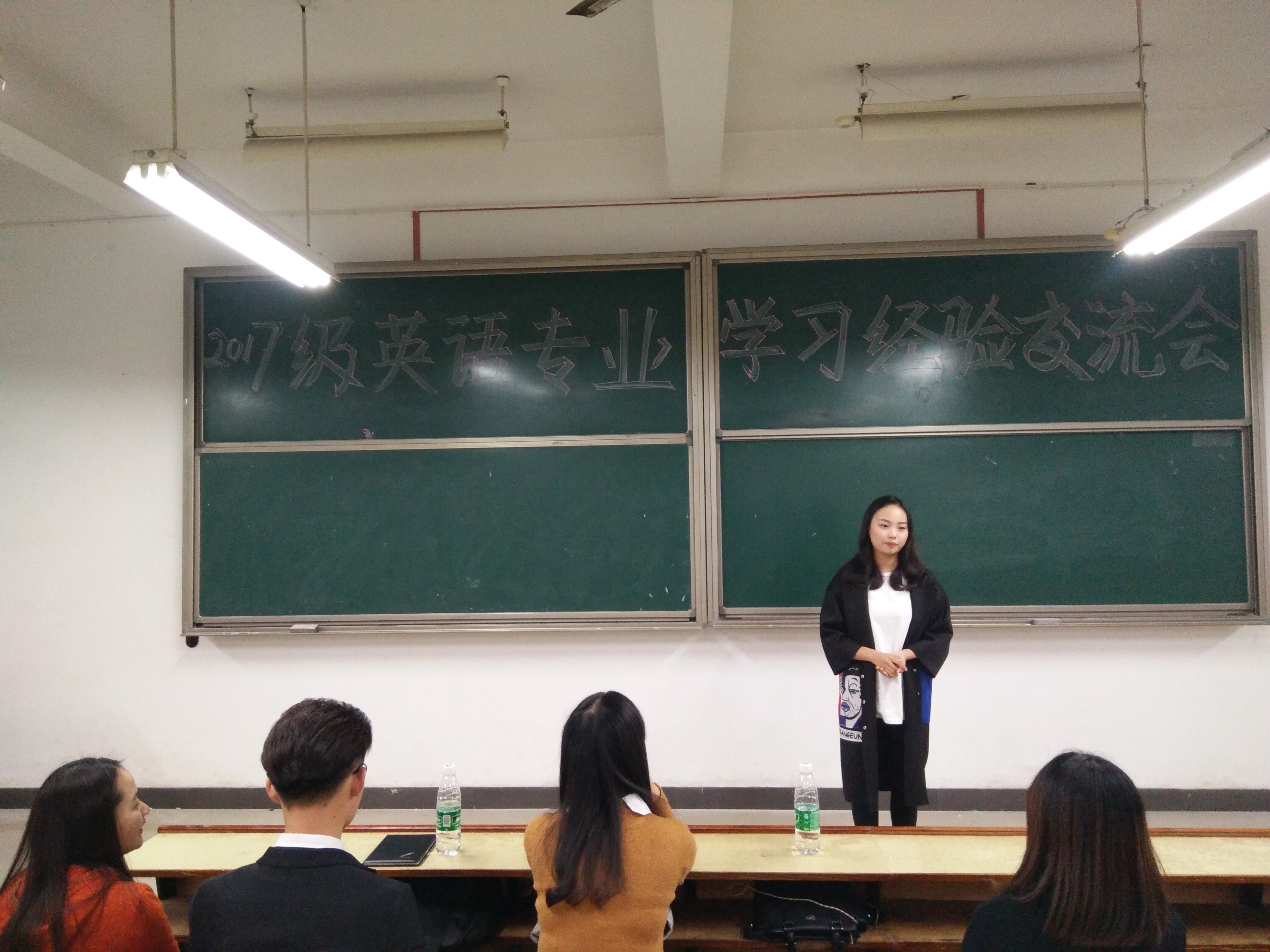 为了使英语专业新生更快、更好的完成由高中生到大学生角色的转变,迅速的融入到大学生活中,麻豆porn 于10月23日晚7::00在教学楼D301举行了2017年度英语专业学习经验交流会。本次学习经验交流会由麻豆porn 团学会干部刘恬文、何李佳主持,麻豆porn 2017级全体英语专业学生到场聆听。麻豆porn 2017-2018届校团委秘书长徐佳琦、麻豆porn 英语专业优秀学生代表李明丽、麻豆porn 2016-2017届团学会主席叶金菊作为特邀嘉宾参加了本次学习经验交流会。