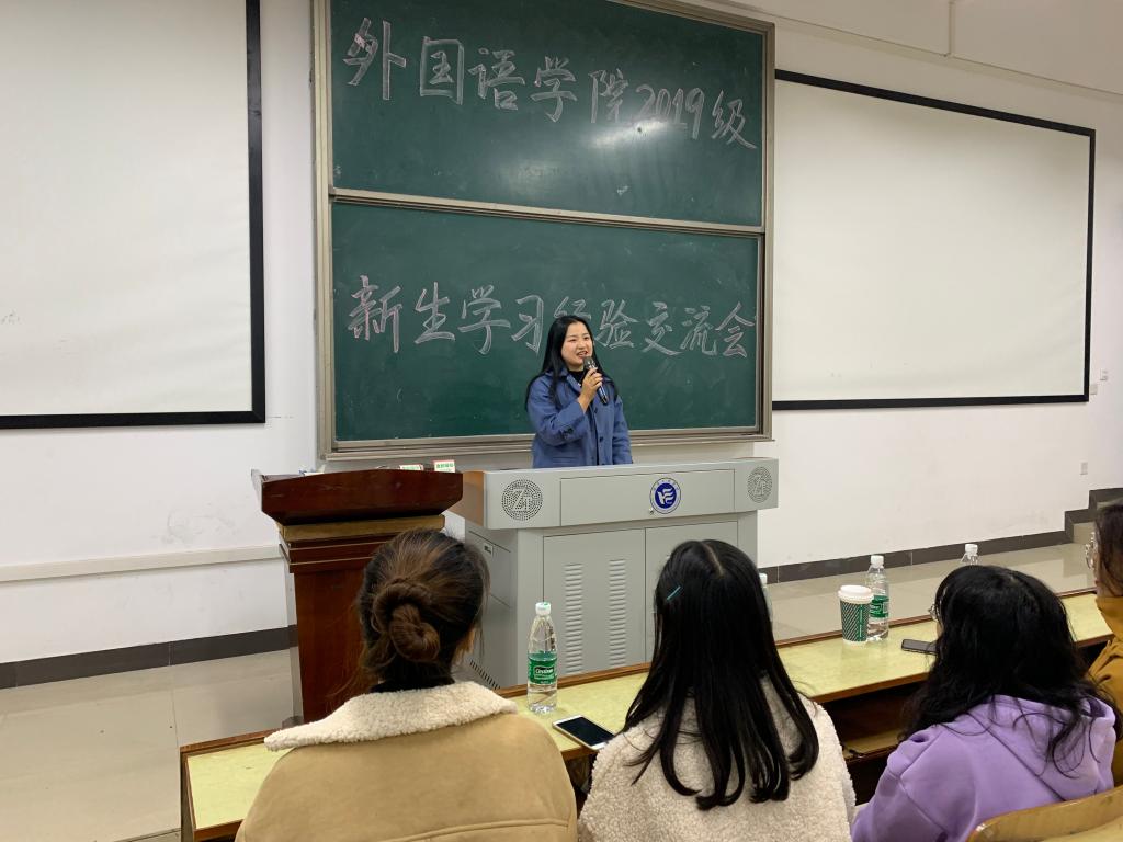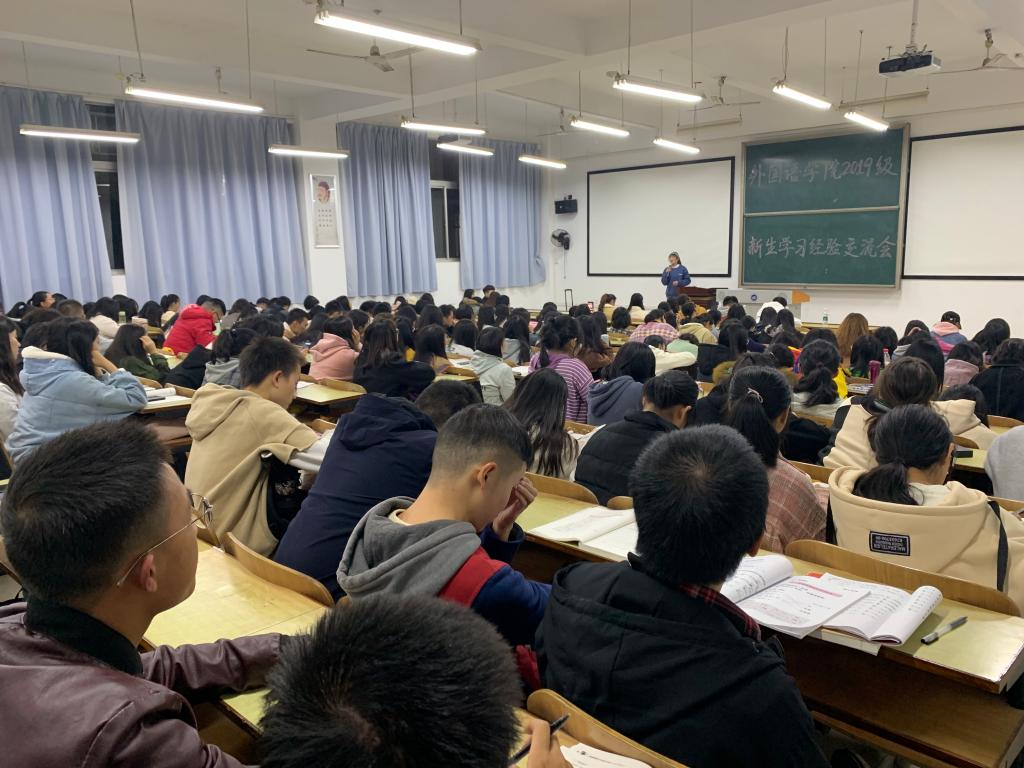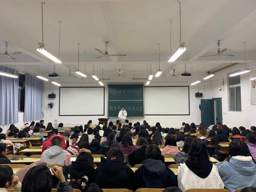 在教学楼D101举行了2019级新生学习经验交流会。本次交流会由学院团学会干部周通主持,学院团学会主席团出席本次交流会,17级优秀学生代表刘彦卓、肖婷婷、刘竞作为特邀嘉宾与2019级新生分享学习经验。