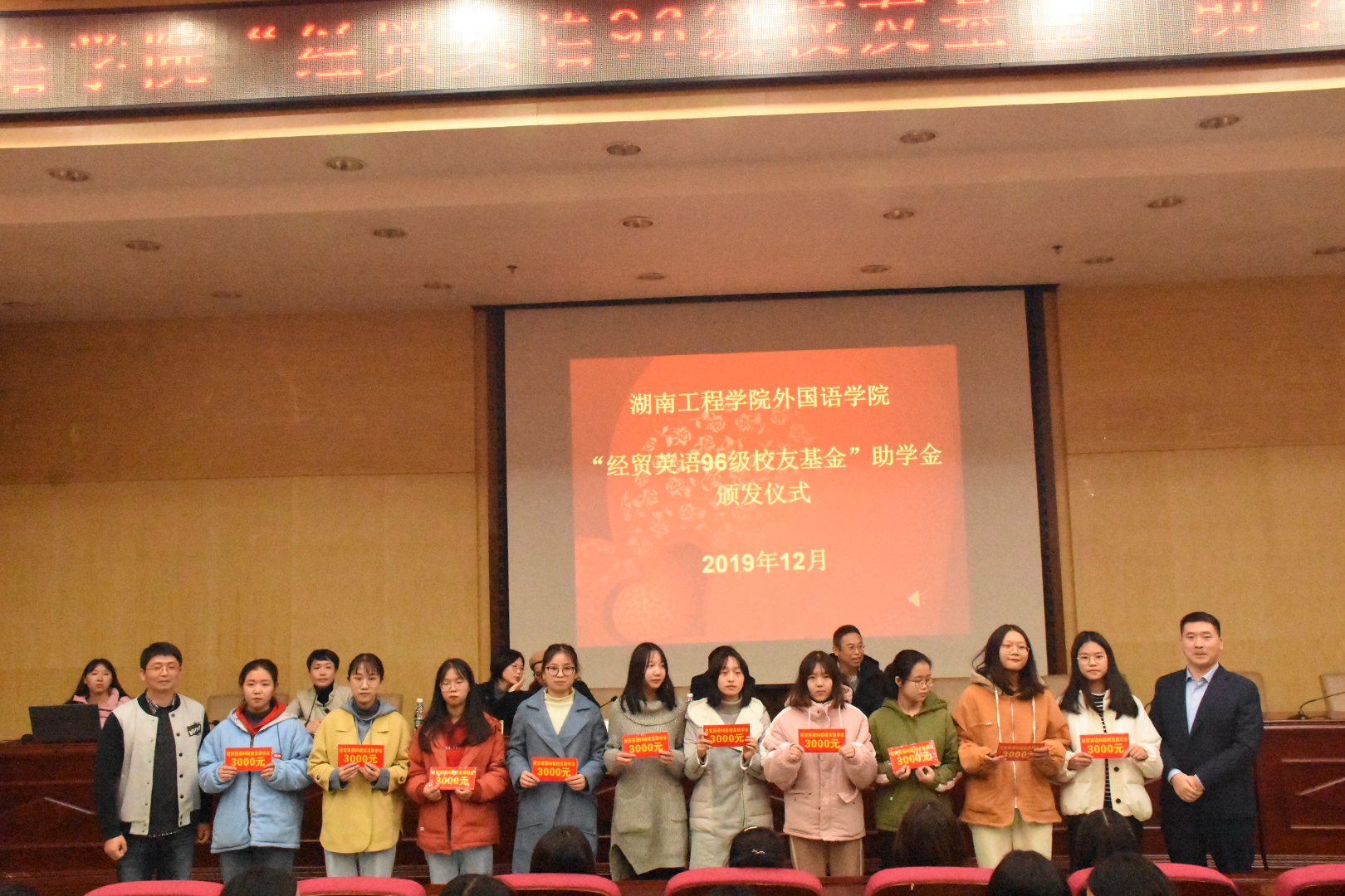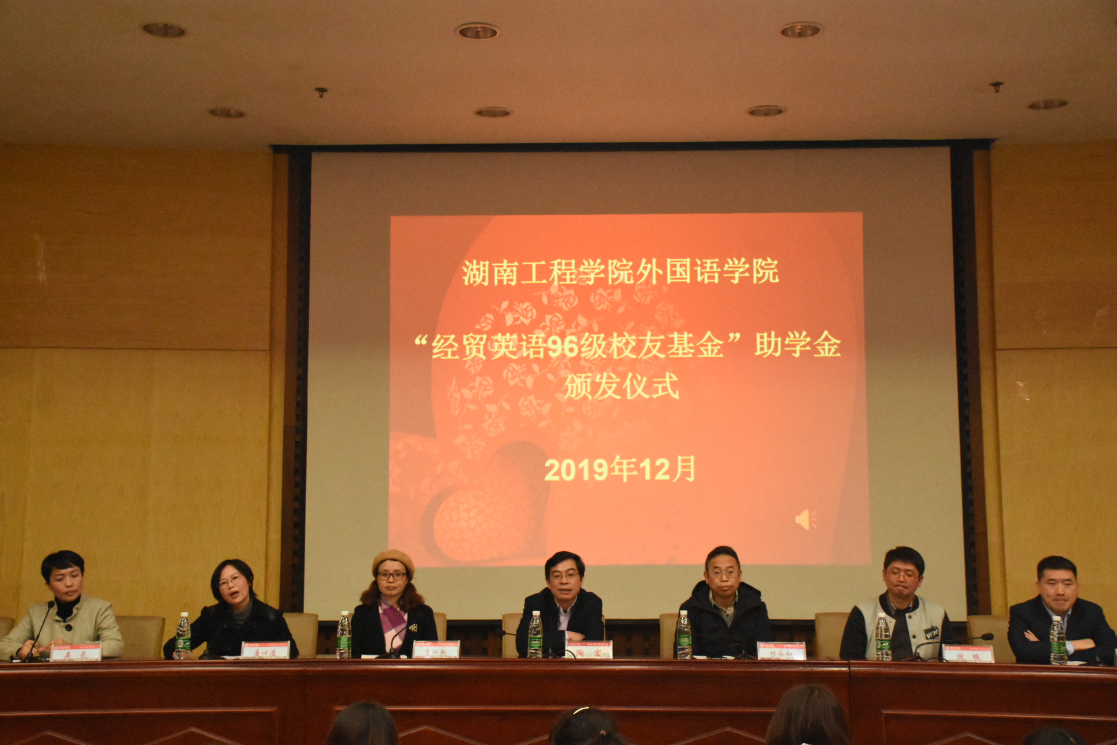 于二报告厅举办了经贸英语96级校友助学金颁发仪式。校友办主任陶宏,麻豆porn