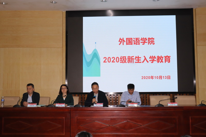 院长杨永和、党总支部书记肖江淑、副院长罗胜杰、副院长王家义、党总支部副书记罗望阳、商务英语教研室主任彭禹、英语教研室主任陈丽娜、苏静、学生工作办公室辅导员等,2020级全体新生参加。