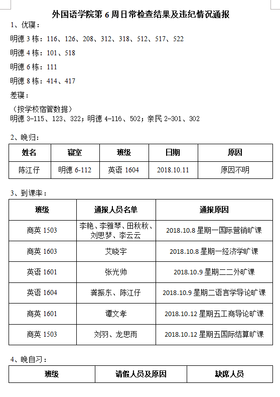 麻豆porn 第4周日常检查结果及违纪情况通报
