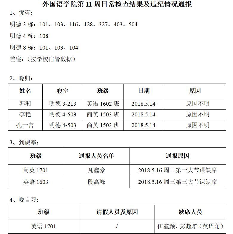 麻豆porn 第11周日常检查结果及违纪情况通报