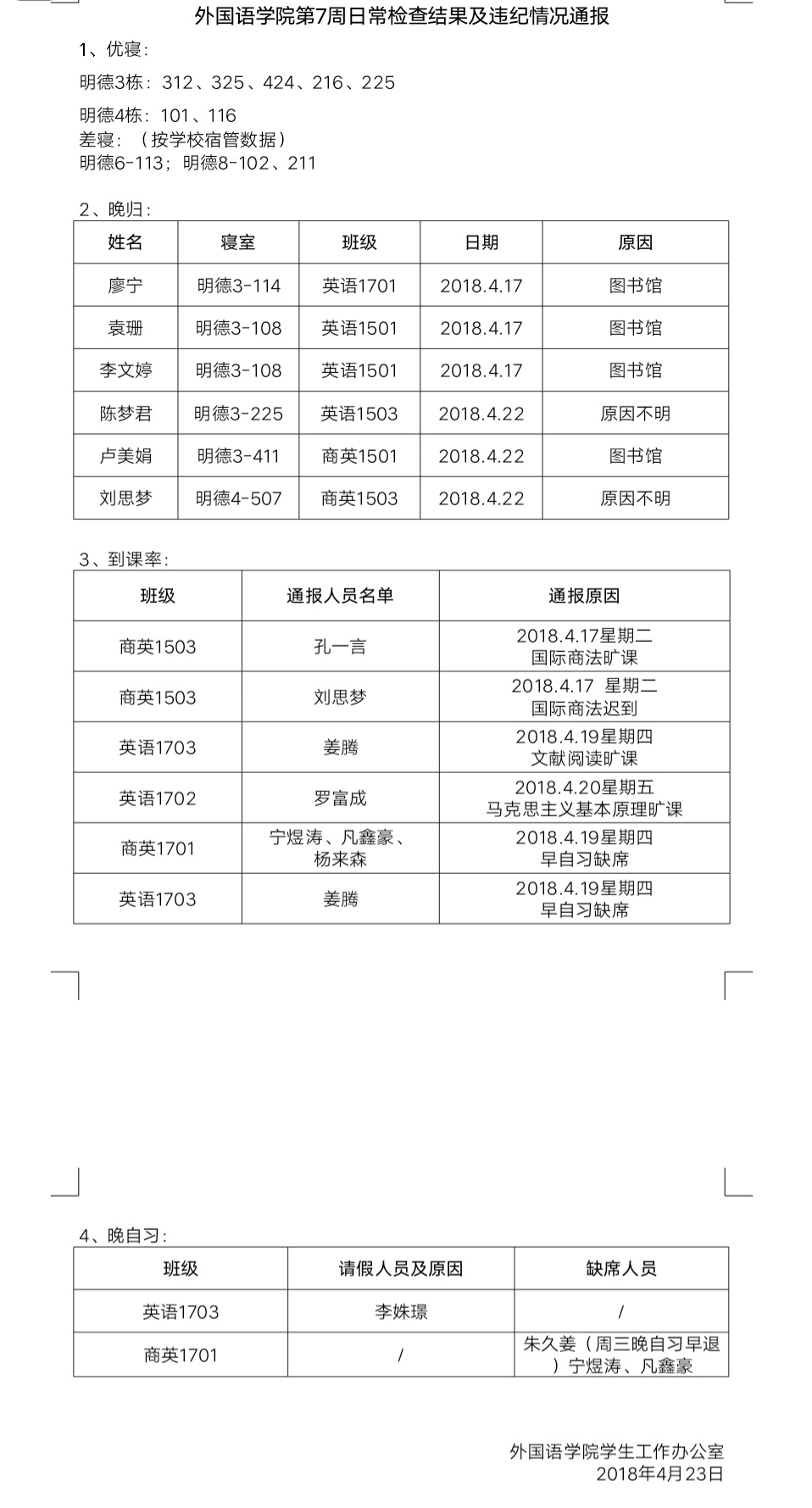 麻豆porn 第7周日常检查结果及违纪情况通报