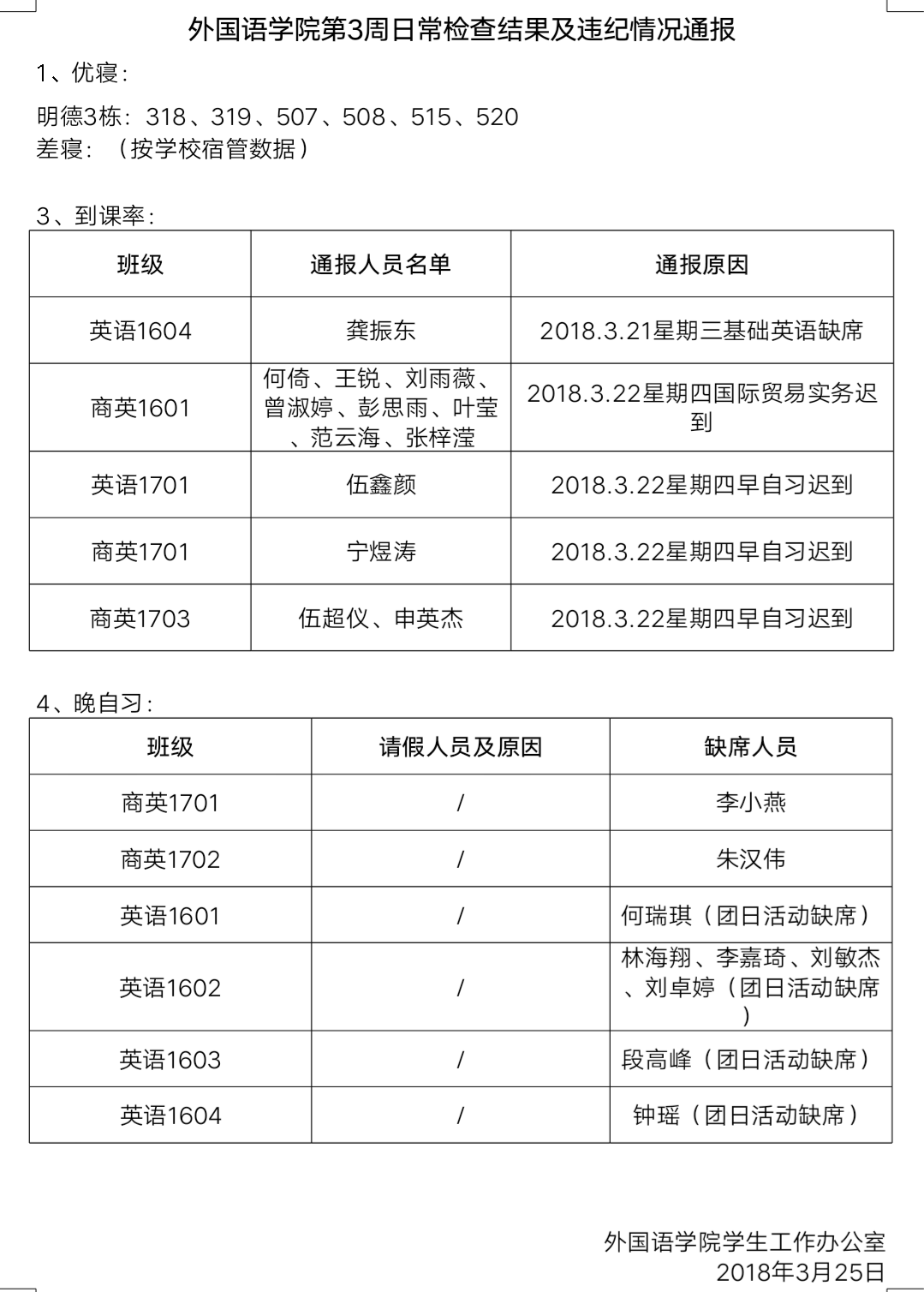 麻豆porn 第3周日常检查结果及违纪情况通报