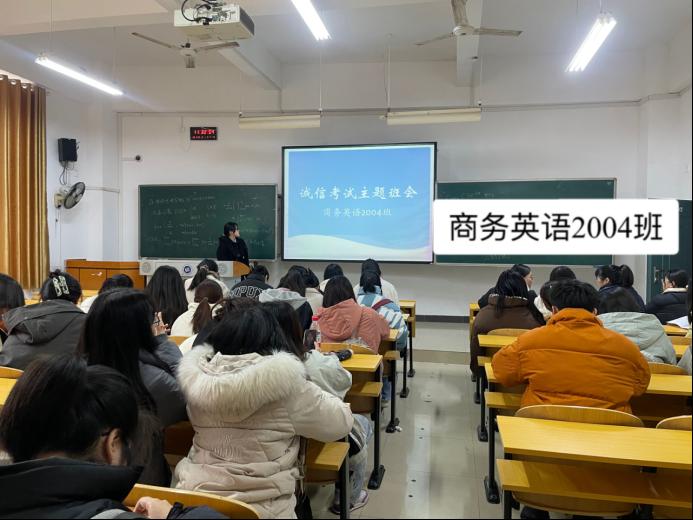 本次班会主要内容为强调考试的要求,并提醒同学们相关注意事项,在每场考试中同学们都需要提前来到相应考场并且携带自己的学生证和身份证,以便监考老师核实身份,做到诚信考试;同学们需要将与考试无关用品交到讲台上;在整个考试过程中,同学们需要牢记"拒绝作弊,诚信考试"的倡议,严格遵守考试制度,拒绝作弊行为。从自身做起,严格要求,用实际行动营造良好的学风、考风,塑造新时代大学生形象,努力创建纯洁公正的外国语学院良好作风。