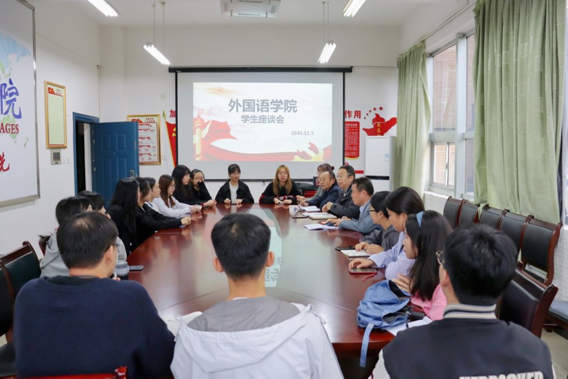 19级学生座谈会。院长杨永和、党总支副书记罗望阳、副院长吴斐及学办主任晏莉、辅导员彭虹出席,2019级学生代表参会。