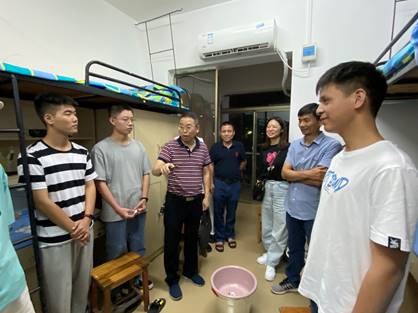 院长杨永和、党总支书记陈亚琼、副院长王家义、吴斐、党总支副书记罗望阳带领学院辅导员及新生班主任前往学院新生寝室看望2021届新生,表达了对新生的问候,给新生送去无限关怀和温暖。