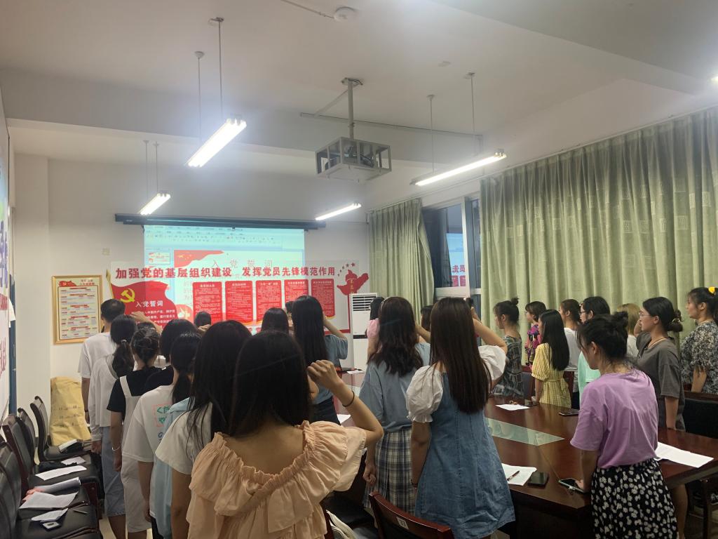 生活会在全体参会党员的庄严誓词声中拉开序幕。随后,肖江淑书记发言。她带各位党员重温了习近平总书记在建党一百周年庆祝大会上的讲话,强调身为学生党员要做到与国家一条心,同学校一条心,促成学校上下一盘棋。热烈的掌声充分展现出了学生党员们对肖书记讲话内容的赞同。