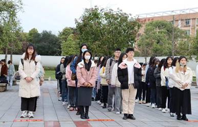 升旗仪式开始,伴随着全体外院师生庄重的注目礼,英姿飒爽的国旗护卫队迈着整齐有力的步伐护送国旗入场。庄严的国歌奏响,五星红旗冉冉升起,全体师生满怀崇敬,注视着飘扬的国旗。