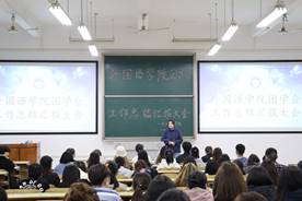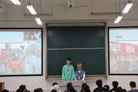 会议最后一项,主席陈丽丽上台对上年度工作进行最后的总结。在对上学期干部干事工作给予充分肯定的同时,她也进一步指出了诸如“如何让团日活动创新式发展,如何让寝室环境更加健康美丽......”此类在团学会工作中尚存的问题。同时,她也强调干部干事在做好部门工作的同时也要注意不要忽略了坚持学习,要做到全面发展。最后,陈丽丽主席也表达了新学期她对团学会的期待,并鼓励大家能够再接再厉,再创佳绩。