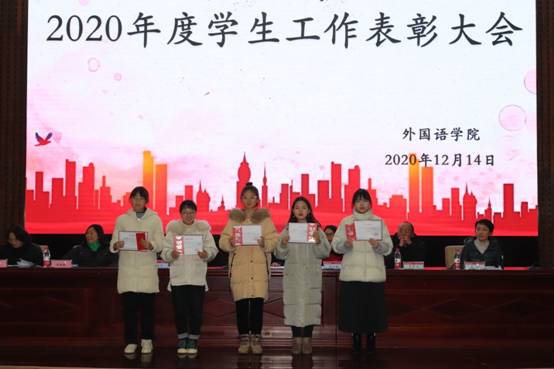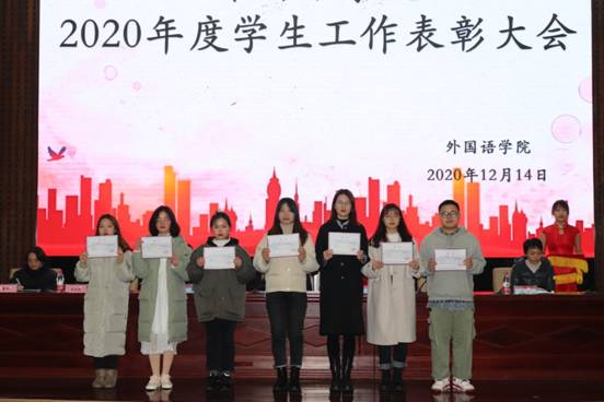 会议进入颁奖环节,在同学们热烈的掌声中,罗望阳书记宣读受聘名单及优秀干部名单,学院领导为受表彰的学生会主席团和团学会干部颁奖并合影留念。紧接着由杨院长宣布“四星”获奖名单,并为他们颁发证书。随后杨院长致辞,他对受到表彰的干部们表达真挚的祝贺,望其不忘初心、牢记使命、坚定信念、一往无前,同时也鼓励在场的同学们积极向受表彰同学们学习。这有利于同学们更好的理解和配合团学会的工作,共同推动麻豆porn