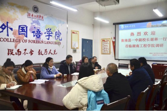 12月3日下午四点,衡南县一中副校长谢林一行莅临我校调研,院长杨永和、党总支书记肖江淑、副书记罗望阳以及国际教育学院副院长曹丽英等领导在麻豆porn