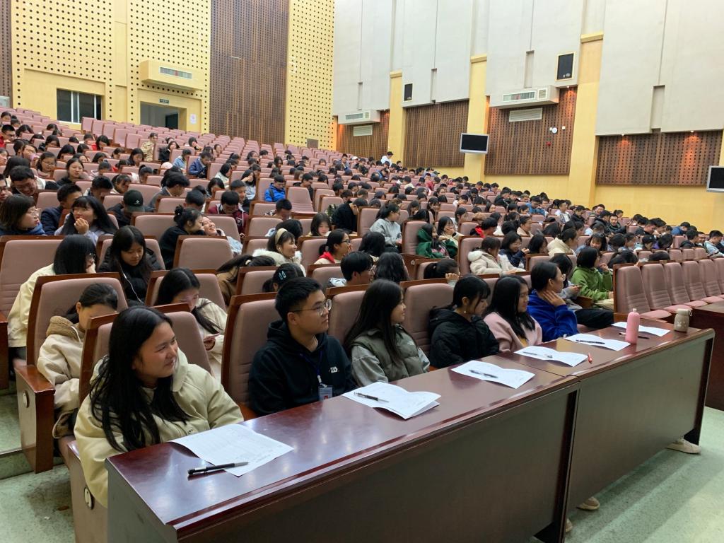 成平以自身工作中碰到的学生安全案件导入,提出在新形势下,加强学生安全意识教育尤为重要。随后,他从校园贷、校园诈骗、出行安全、消防安全、国家安全五个篇章出发,向大家详细的介绍校园贷及校园诈骗的常见形式、真实案例、引发的问题和危害及应对措施;提醒同学们注意交通安全、外出安全;增强消防安全意识,遵守高校防火制度等,普及了灭火器的使用方法,火灾疏散与逃生技巧;并进行了爱国主义教育,告诫大家一定要远离危害国家安全行为。其幽默生动的语言,吸引着同学们。
