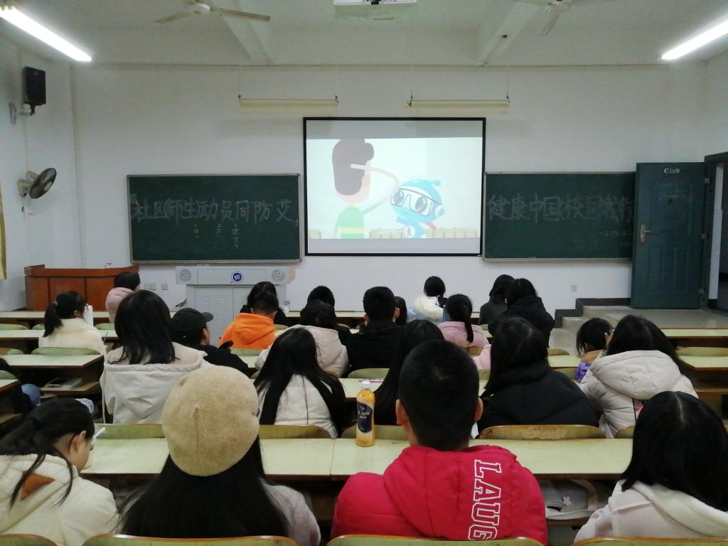 于12月1日晚上7:00,以班级为单位举行了“社区(师生)同防艾,健康中国(校园)我行动”知识主题班会,2019级全体同学参加此次活动。