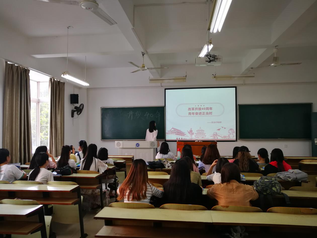 各班于教学主楼开展了“改革开放40周年,青年奋进正当时”主题班会,全体学生参加了此次班会。