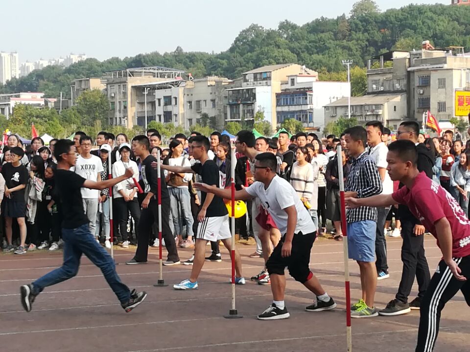 一声哨响,红旗飞扬,伴随着直入云霄的枪声,运动会正式开始。塑胶跑道上,运动员身姿矫健,他们心里只有那条近在眼前的终点线。短跑过后的长跑更是令人动容,脚步沉重,呼吸凝重,可是,没人想到放弃,因为陪跑的旗帜就在身边。与此同时,跳远,铅球,标枪,跳高也在操场中央进行,映入眼帘的,是一道道完美的曲线,每道抛物线都引起围观同学的阵阵欢呼。上午11:15,项目进行到迎面接力赛,接力棒不断在手中交接,赛道上的运动员快到已经看不出表情, 60米很短,同学们的激情却很长!