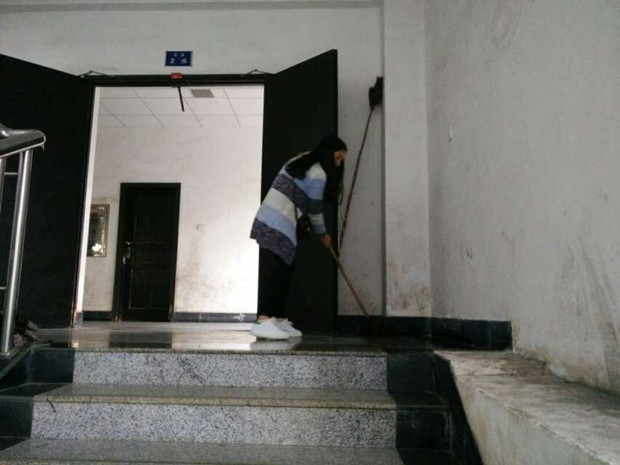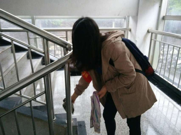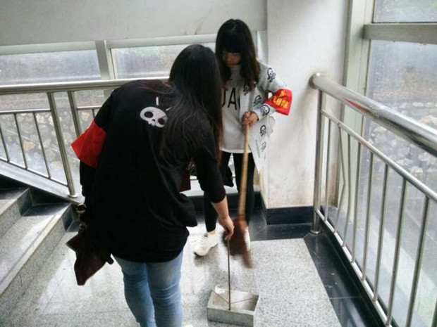 团总支学生会组织多名干事在教学楼C栋进行了卫生清扫活动。