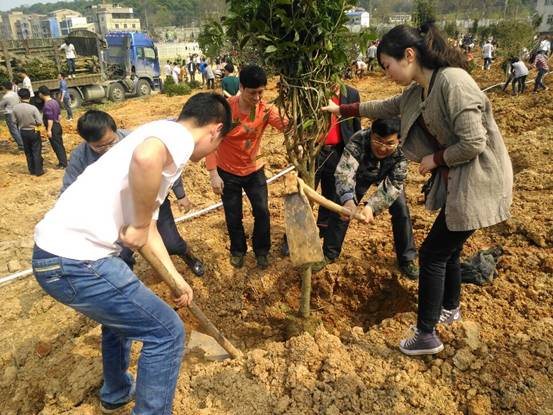 随着大卡车隆隆的轰鸣,数千棵树苗被运载到目的地,大家,你缷我运,劳动热情高涨!老师们细心指导,手把手教着。不一会学生们就轻车熟路了。只见他们一个扶树、一个培土、一个浇水,井井有条。由于师生们齐心协力,埋头苦干,本次植树活动圆满落幕!