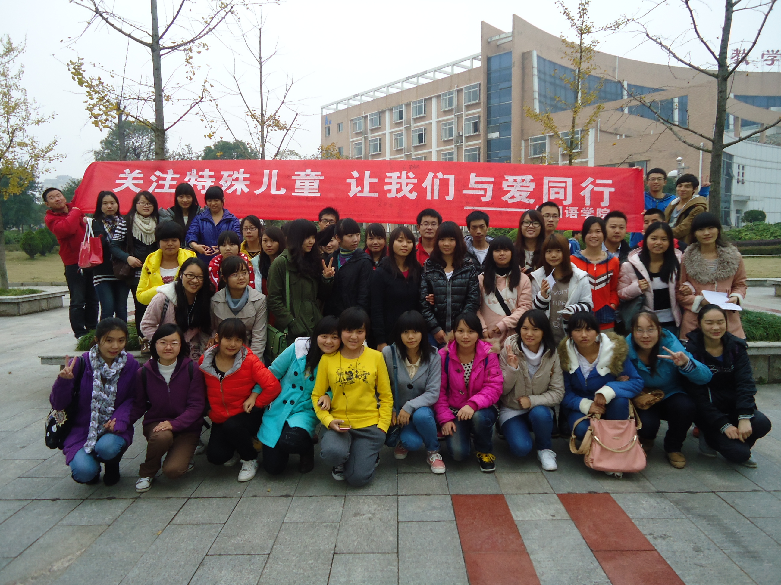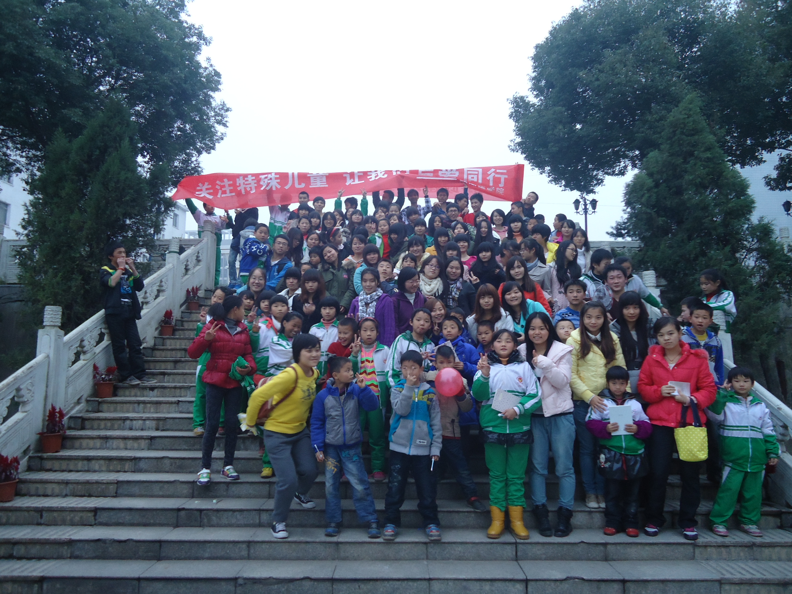特殊学校的孩子们用精心准备的《阳光总在风雨后》的手语表演欢迎了我校志愿者的到来。志愿者们则根据特殊儿童的个体兴趣分成几组,分别开展了折纸手工艺、跳绳、篮球、羽毛球、踩气球及拔河比赛等游戏,整个校园充满了孩子们与志愿者的欢声笑语。游戏活动后,志愿者为特殊儿童分发礼物,并和他们合影留念。