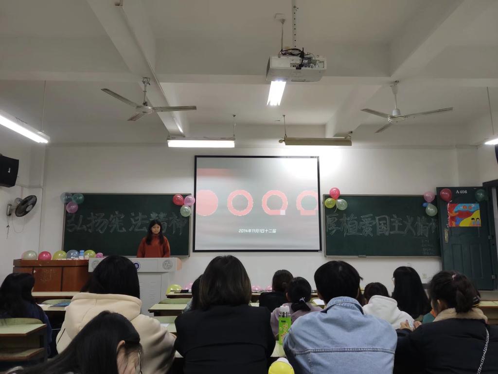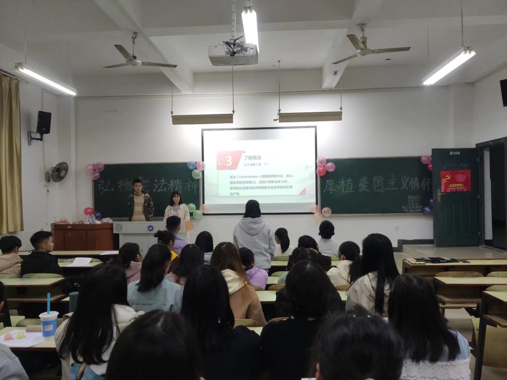 大一至大二各班团支部在教学楼举行了以“弘扬宪法精神,厚植爱国主义情怀”为主题的团日活动,各班同学积极参与了本次团日活动。