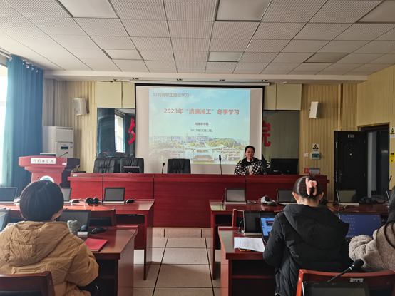 召开全体教职工大会,集中开展“清廉湖工”冬季理论学习,会议由学院党总支部书记陈亚琼主持。