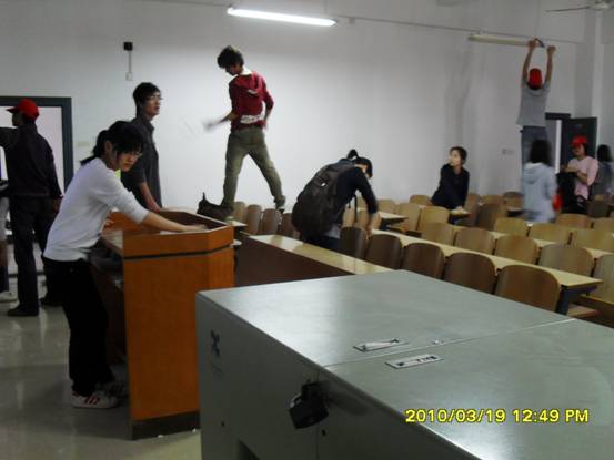 所有党员、预备党员以及团学会全体干部干事,携手理学院雷锋社开展了“学雷锋,清除教室牛皮癣”的志愿活动。本次活动旨在创建校园文明,传播雷锋精神。