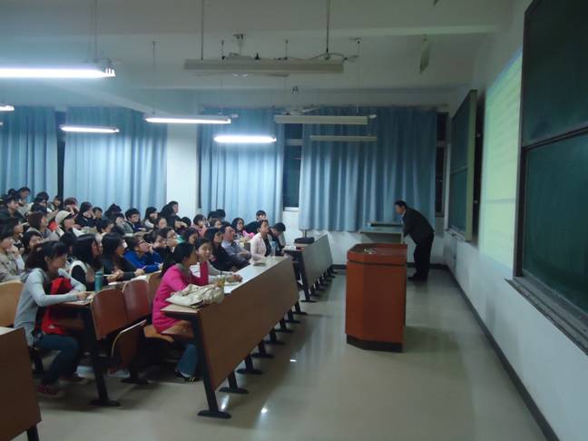 当晚,会场气氛热烈、座无虚席。讲座由刘向红教授支持,在热烈的掌声中拉开了帷幕。首先,杨永和教授作主题为“译可译,非常译——中英人名翻译研究”的学术报告。他结合自己的社科基金课题,从科技翻译的角度,对人名翻译的标准、原则以及翻译所存在的各种不同现象进行了阐述和分析,观点新颖、例证丰富、引人入胜。随后,罗胜杰副教授作“语言研究新思路”的学术报告。他对语言研究中的跨学科问题做了详细的讲解,并结合大量语言事实,生动有趣地论述了语言经济的诸多方面。最后,刘向红教授针对“我国外语教学问卷调查研究的发展趋势及选题特点”作了精彩演说,强调在外语教学方面的各种研究方法、研究思路以及应该注意的事项。三位学者把自己最近几年的学术研究成果向与会者做了简洁而精彩的汇报,赢得了大家的交口称赞和钦佩之情。