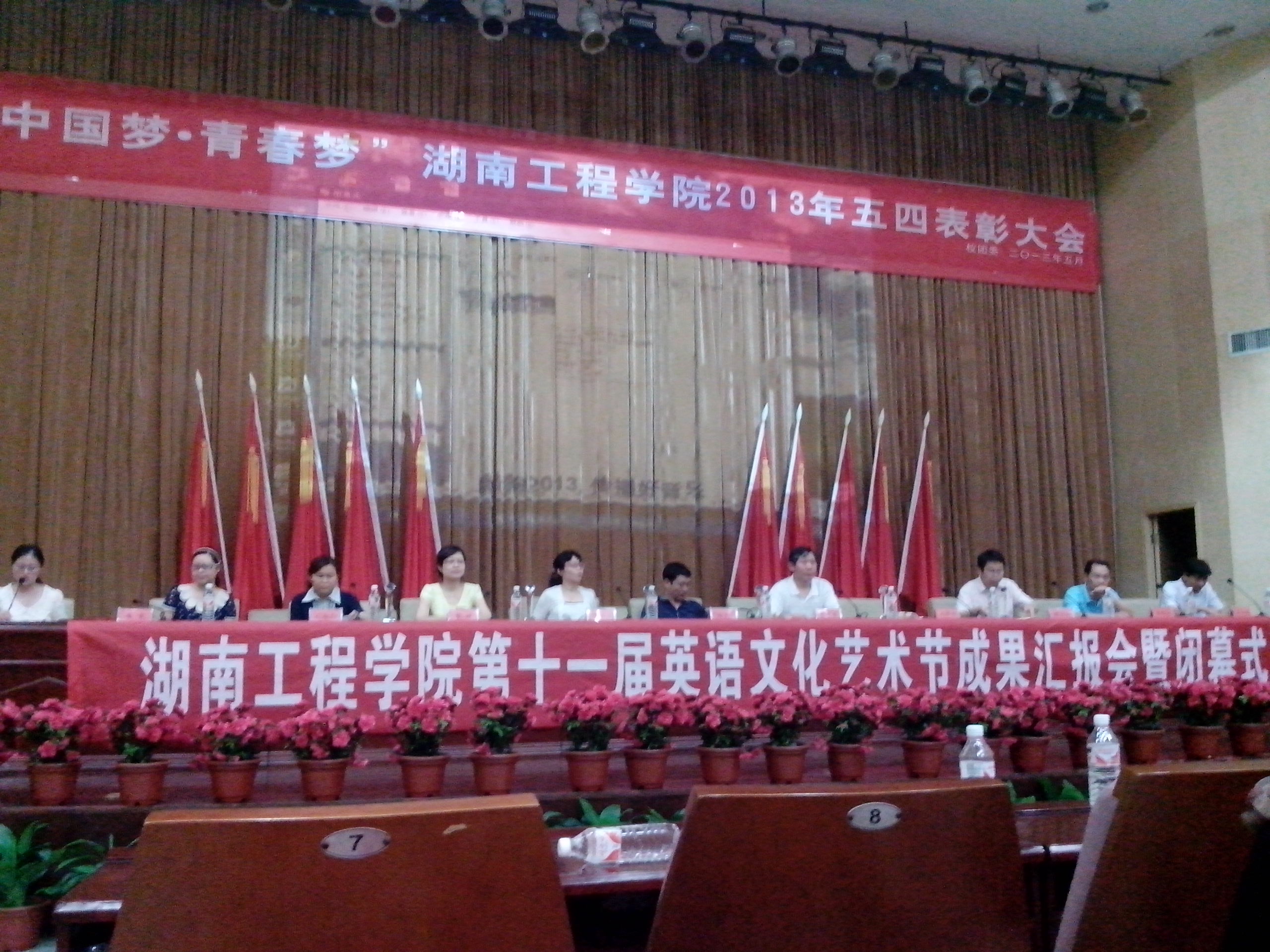第十一届英语文化艺术节成果汇报会暨闭幕式于6月4日晚在一报告厅隆重举行。副校长李希恒出席闭幕式并讲话,党委宣传部部长张玉东、校团委书记黄中华、学生工作处副处长黎娅、校关工委李旭阳、麻豆porn