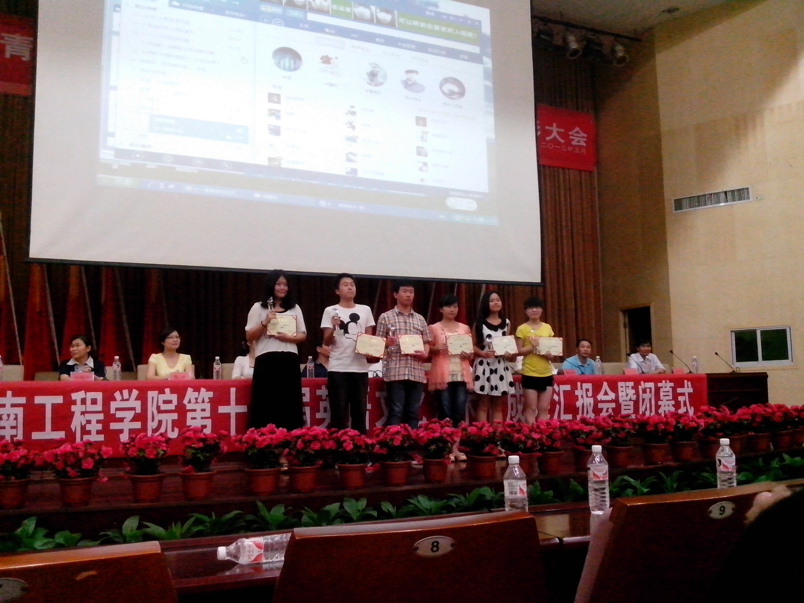 院长杨永和宣读了获奖的集体和个人名单。优秀组织院部为管理学院和电气信息学院。各项活动一等奖获得者6人,二等奖获得者12人,三等奖获得者17人。出席表彰大会的领导分别为获奖集体和个人颁发了荣誉证书及奖品。