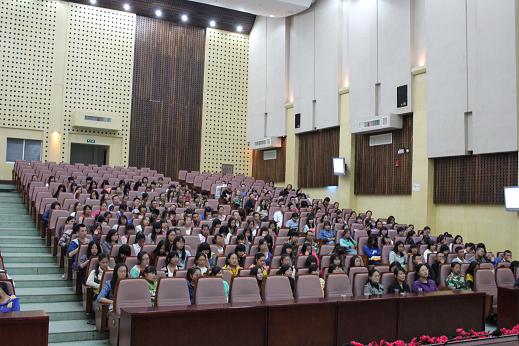 院长杨永和、党总支书记肖江淑,副院长刘向红、王家义,辅导员蒋莉及英语教研室章明蕾、商务英语教研室陈晓,各新生班班导及2013级全体新生参加了此次大会。