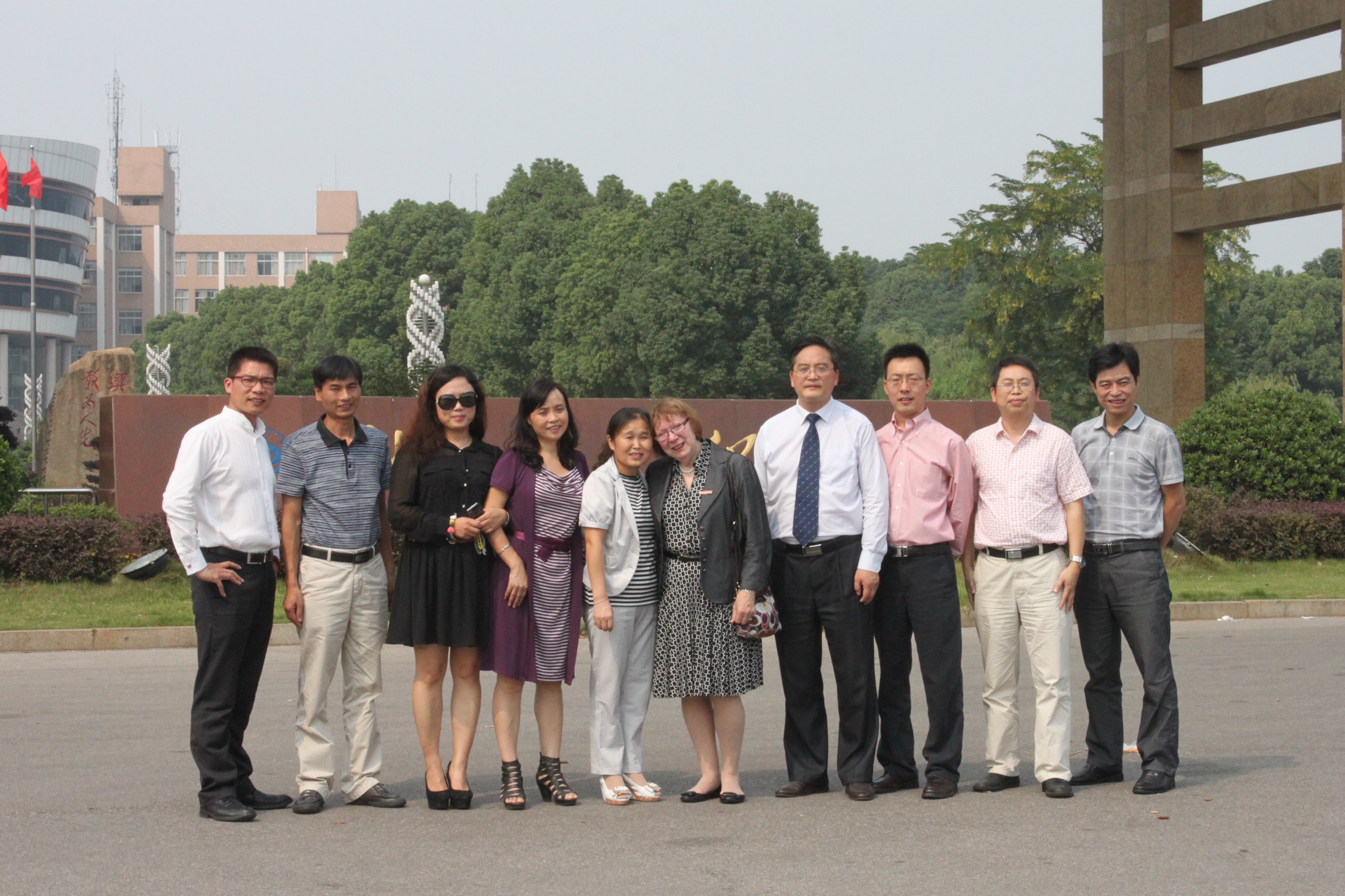 10月3日,在校友的陪同下,谢碧佳饶有兴趣地参观了迅达科技集团,该民营企业也是我校英语专业省级优秀实习教学基地。一行人还兴致勃勃地在市区游览,参观了东方红广场和步步高商业中心等地。外教还到了在湘潭工作的校友家做客,大家一起包饺子,笑声不断,情谊浓浓。