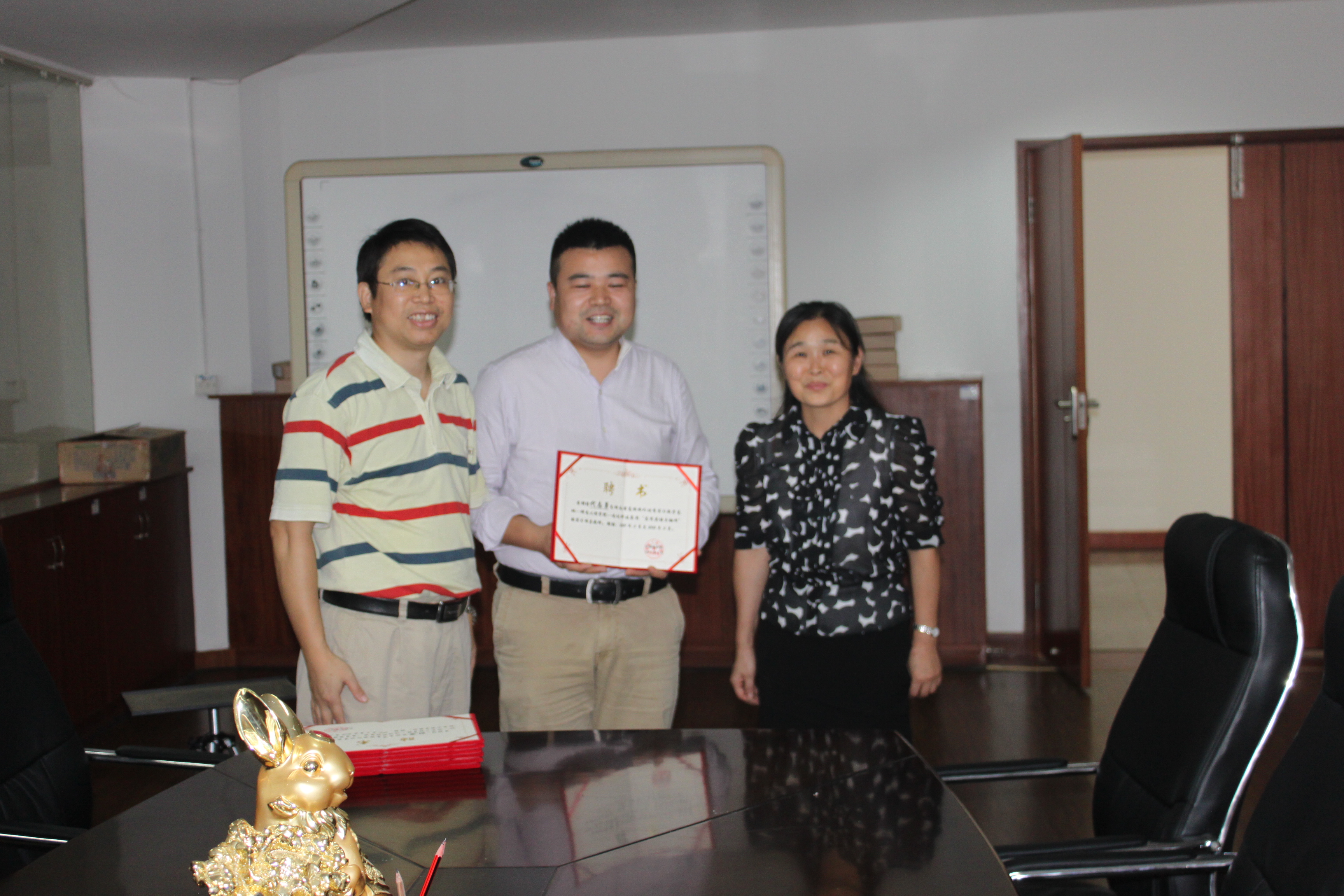 院长杨永和、副院长刘向红和王家义率商务英语专业教研室部分教师前往迅达科技集团股份有限公司为指导教师颁发了聘书。