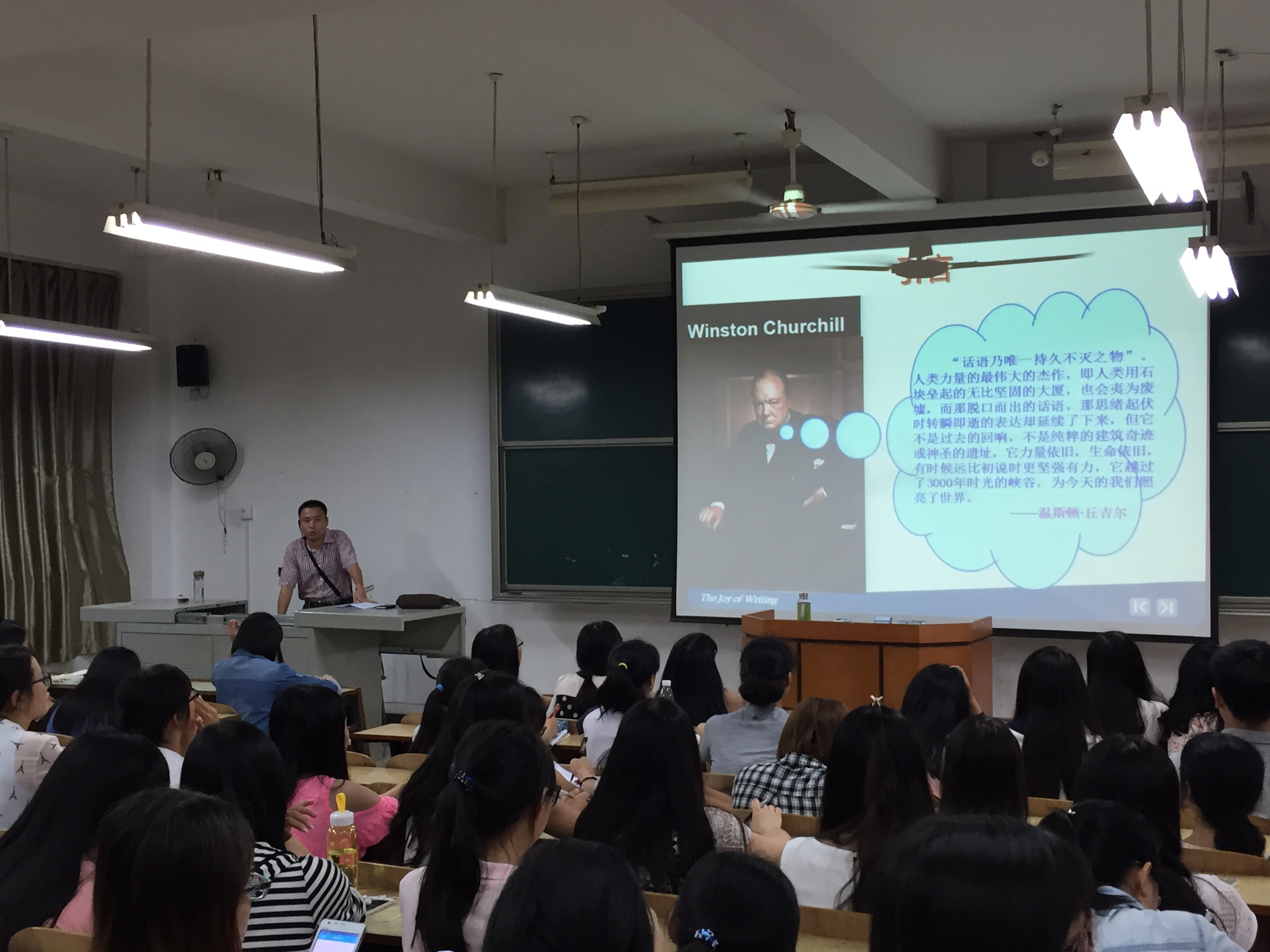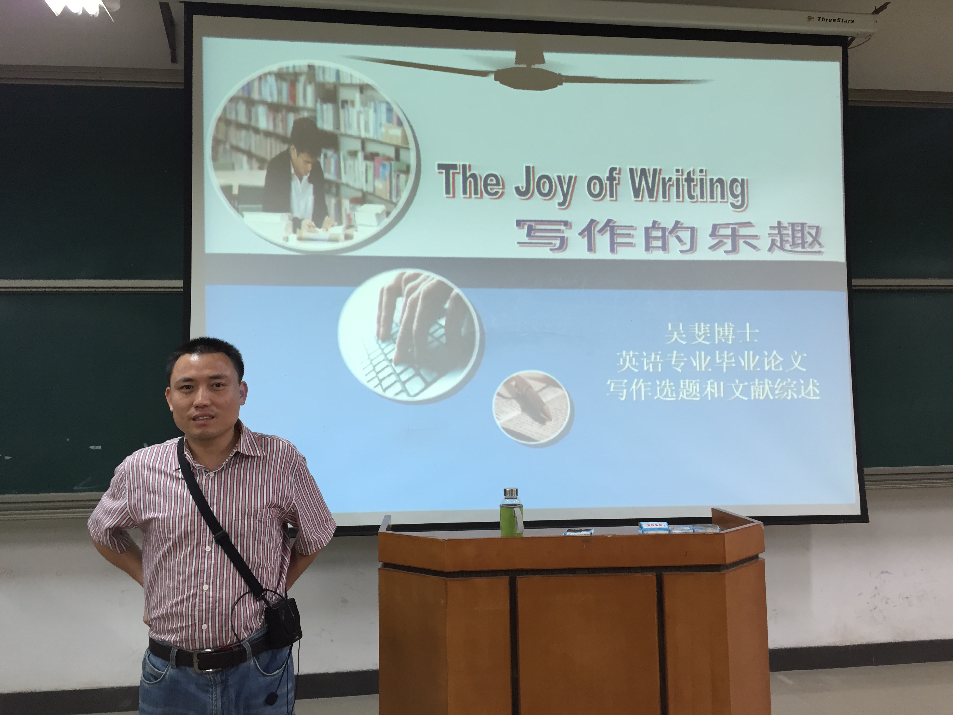 商务英语教研室吴斐博士在主校区D-203给将近200名师生进行《英语专业毕业论文写作选题和文献综述》专题讲座。