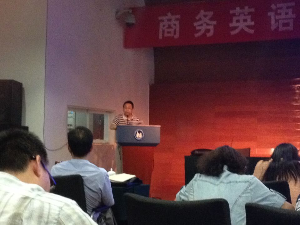 各项工作的重中之重。在院长杨永和教授的带领下,商务英语教研室主任彭禹和副主任姚玲丽参加了外研社7月12-16日在北京举行的“商务英语课程设计与教学方法”研修班。商务英语学科的领军人物王立非、叶兴国和彭青龙等专家高屋建瓴、把握外语教育新常态,分别为全国23个省、市、自治区60余所高校的近200名教师作了题为“新常态下的商务英语教育”、“国家标准对商务英语人才培养和专业建设的要求”和“商务英语教师发展”的学术讲座。