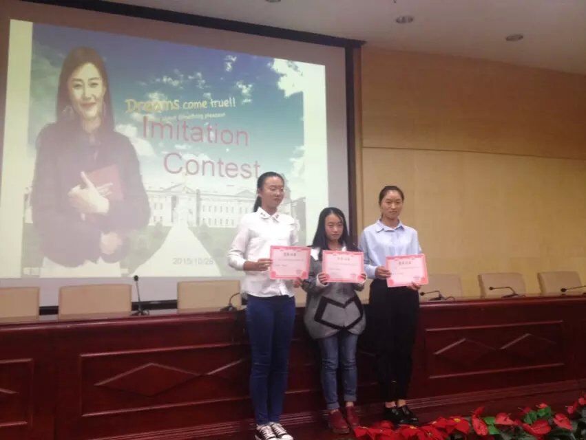 10月28日下午,商英1501、1502、1503三个班全体同学齐聚图书馆二报告厅。经过赛前的班级选拔后,十八位参赛选手逐一登台,为大家献上了激情澎湃的模仿演讲。经过激烈角逐,最终杨欢、姜依玲、万春等十位同学脱颖而出,分获各类奖项。赛后,副院长罗胜杰教授代表评委,对选手们的精彩模仿进行了细致点评,同时寄语全体同学,要求他们保持激情,在老师的精心指导下端正态度,努力学习,提高英语水平。