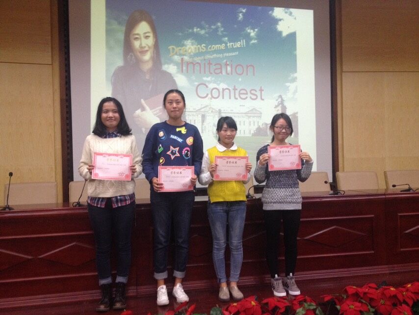 英语语音模仿比赛是语音强化训练的一项重要内容,通过比赛,不仅使学生的英语语音得到纠正和改进,而且可以让他们以此为契机,达到促进英语学习的目的。赛后,部分学生坦言:通过这次比赛活动,同学们对大学学习和生活又有了新的感悟,学习劲头更加充足了。当然,英语语音的改善和提高并非一朝一夕的事,需要坚持不懈的努力方能达到,我们希望在今后的学习当中,同学们能取得更大的进步!
