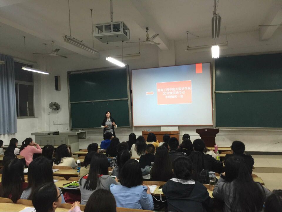 英语专业毛帅梅博士于新校区D-102举行了一场英语专业考研讲座。同时,五位2013届考研成绩出色的同学参与了本次讲座串讲。整个教室座无虚席。