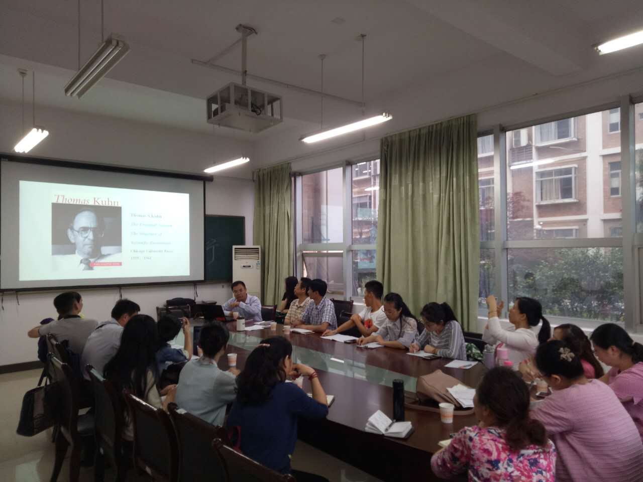 院长杨永和主持,学术骨干和部分学生一同聆听。