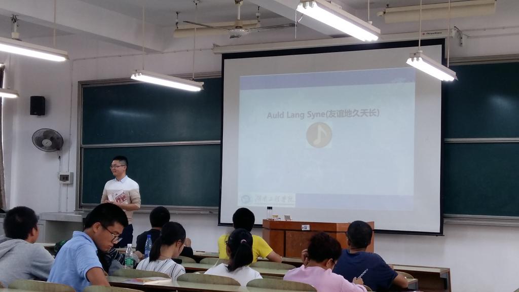 大学英语一教研室新进教师梁彪准备了一堂内容丰富的公开课,院长杨永和、副院长罗胜杰及部分教师前往观摩。