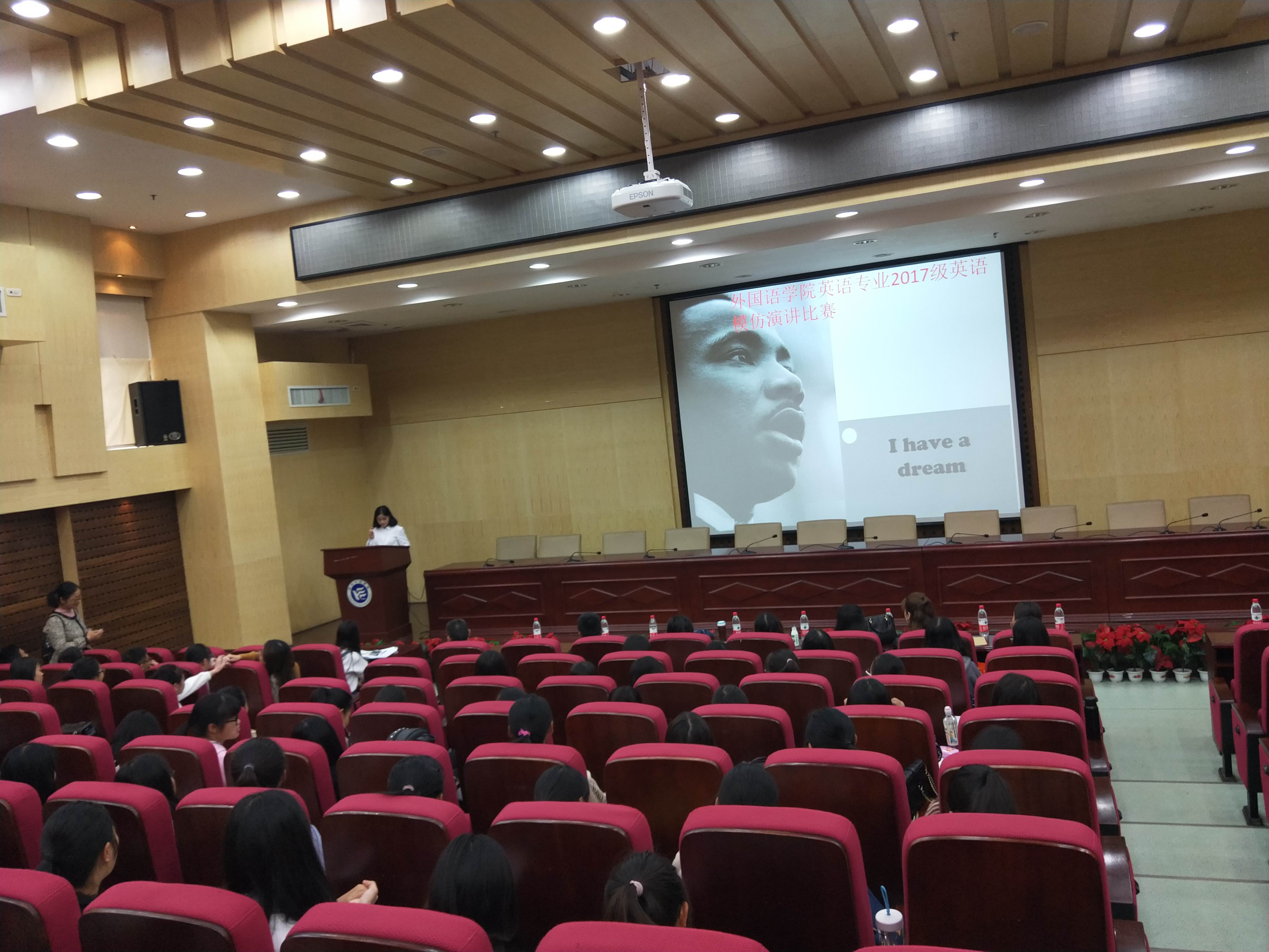 17级英语专业新生英语模仿演讲比赛决赛在图书馆二报告厅举行,院长杨永和、副院长罗胜杰、以及英语教研室部分教师担任评委,17级英语专业同学参与观摩。