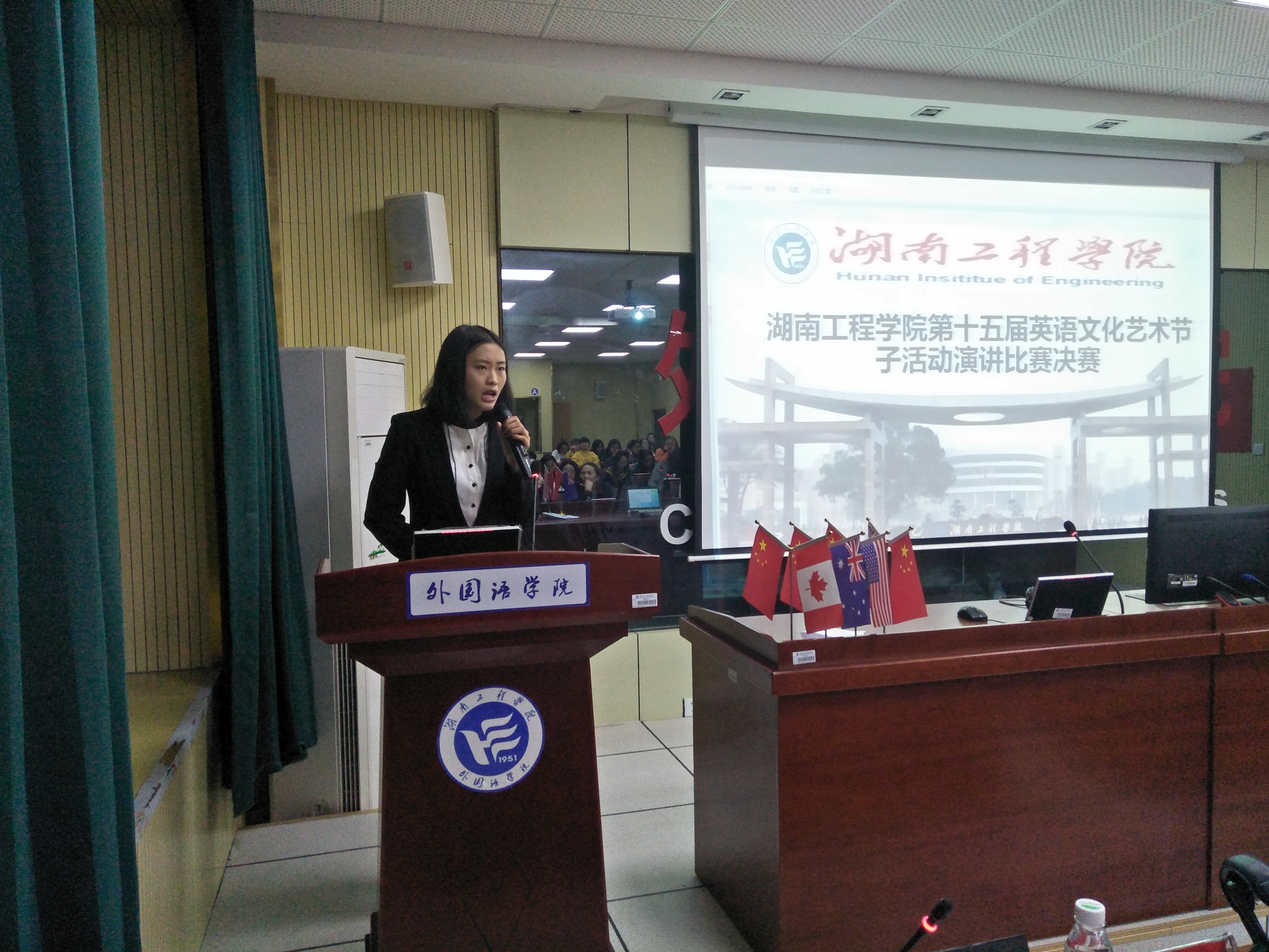 承办的我校第十五届“梓萌杯”英语文化艺术节系列活动之英语演讲比赛决赛在新校区主教学楼F-309隆重举行,比赛由曹津维、陈宇枝主持,麻豆porn