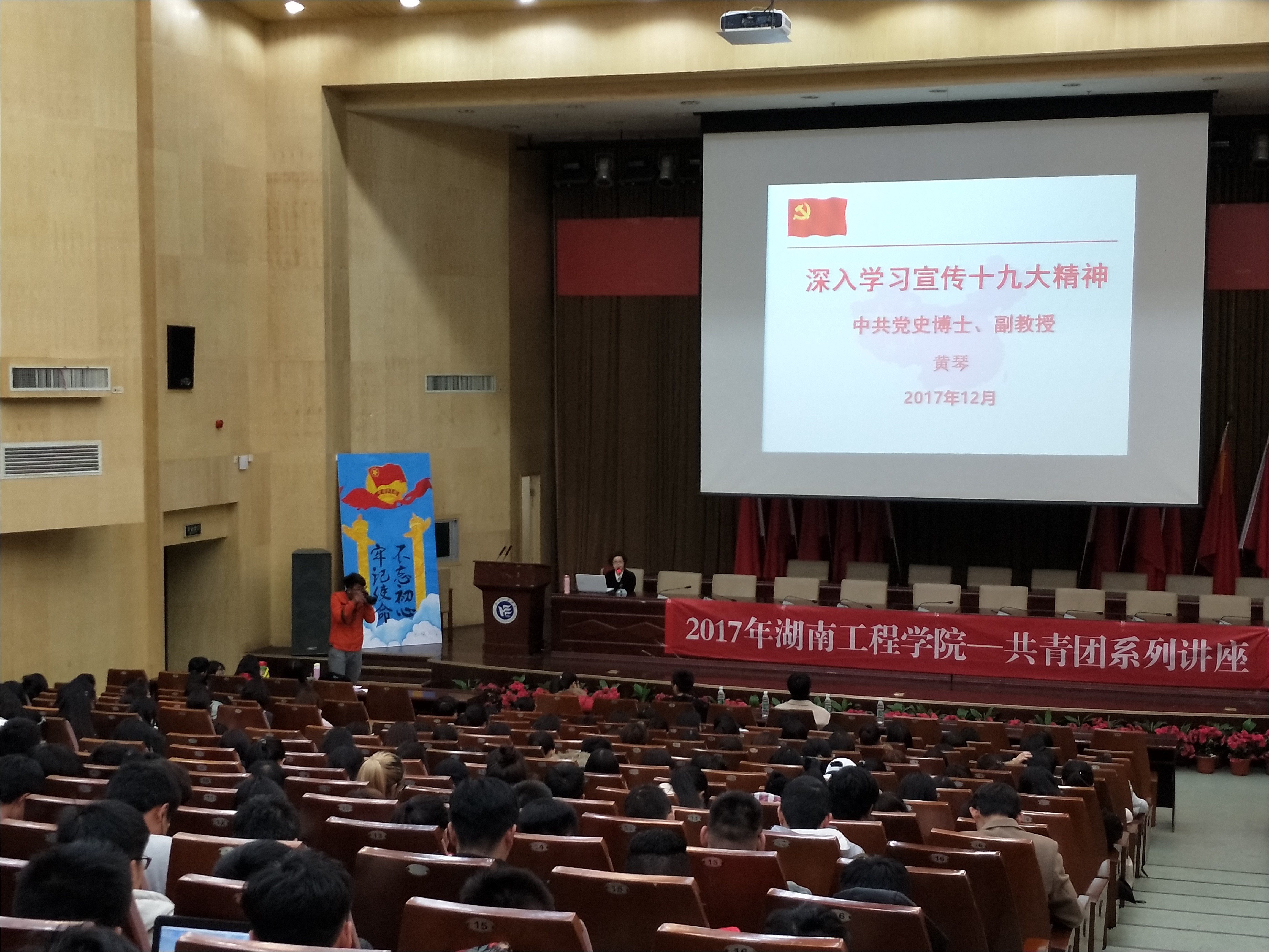 “深入学习宣传贯彻党的十九大精神”于12月11日晚8点半在图书馆一报告厅举行,由学院党总支副书记黄琴担任主讲,麻豆porn