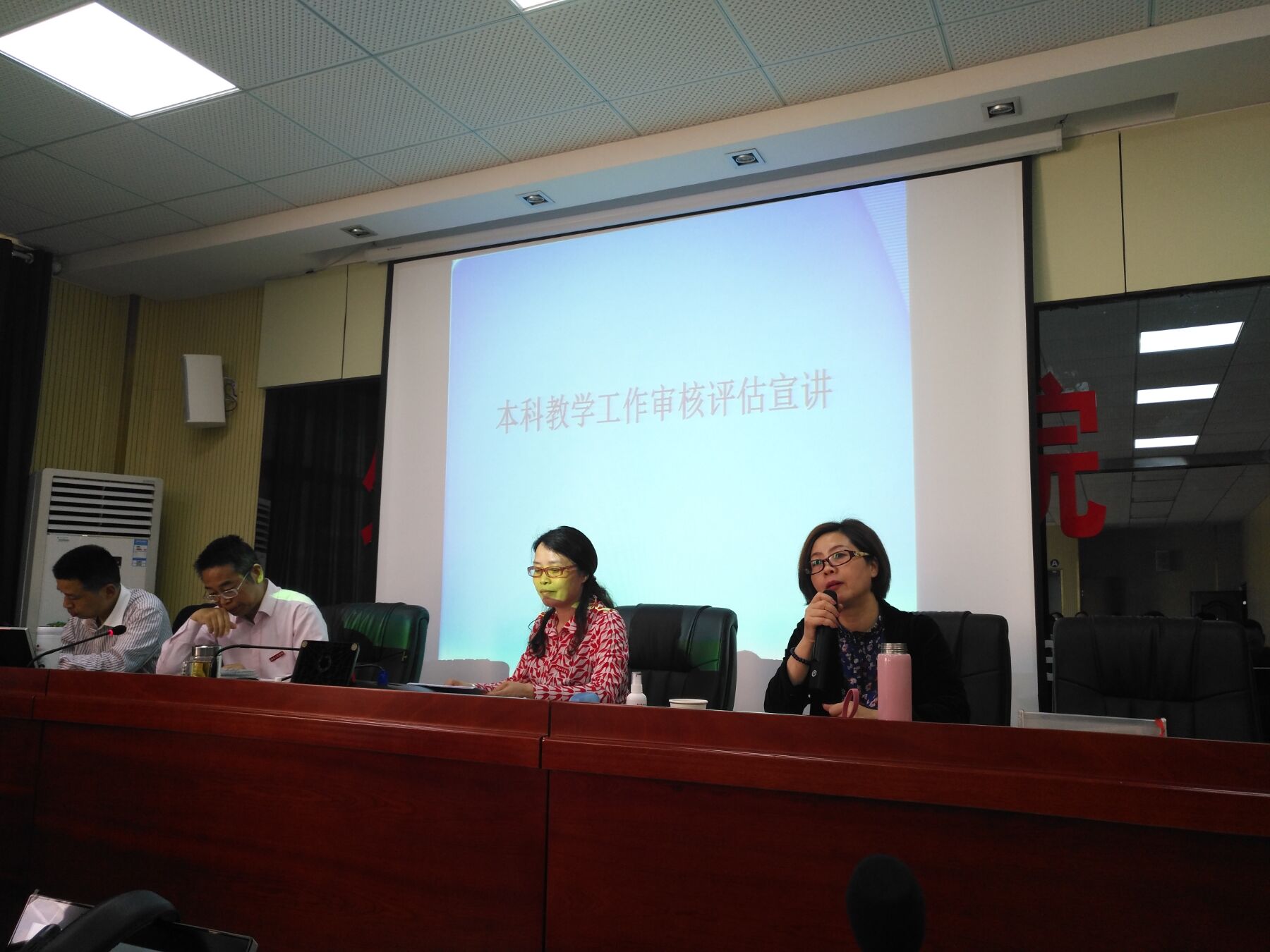 在会议室F-119召开全院教职工大会,进行本科教学工作审核评估宣讲。