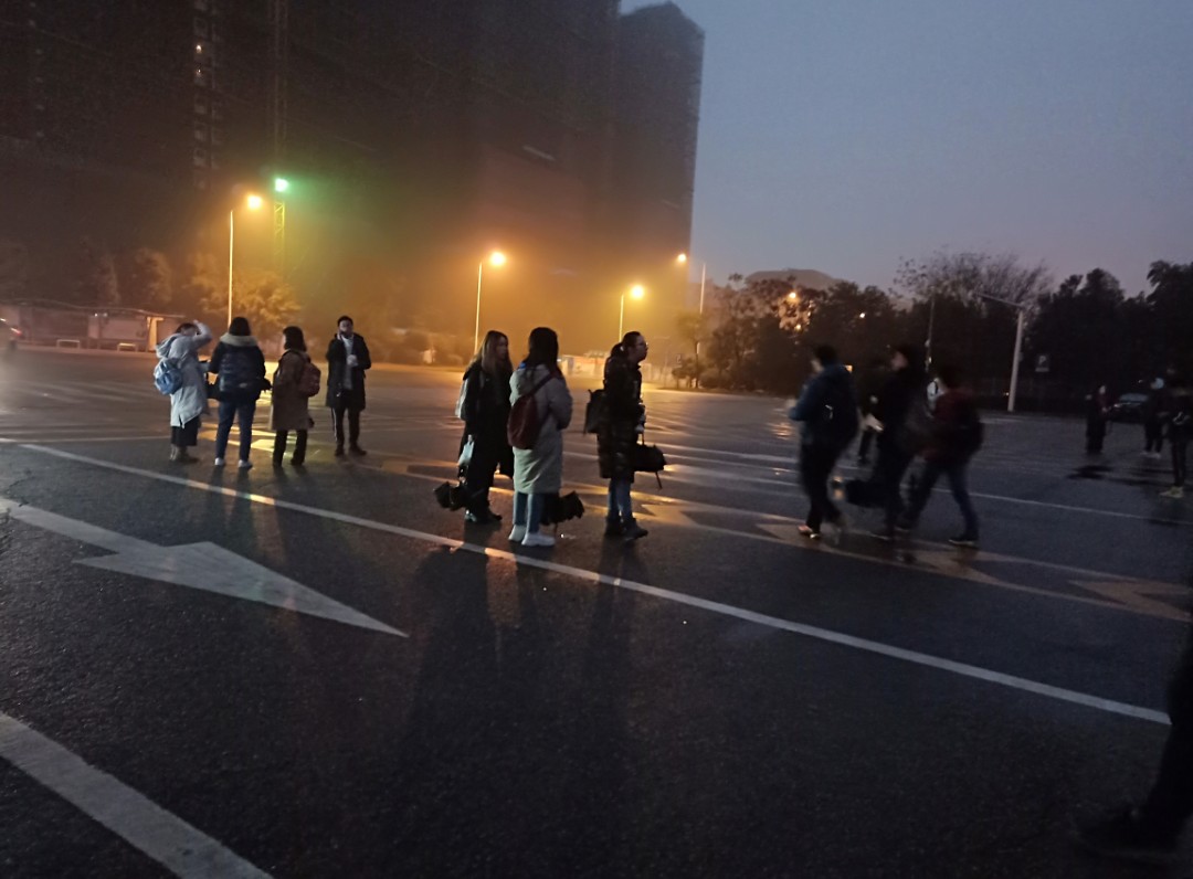 考研大军在校门口集合,准备奔赴“战场”。清晨的初冬寒风凛冽,但麻豆porn