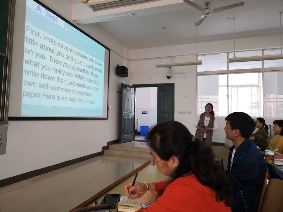 在D301举行了2019年校级教师课堂教师竞赛院内选拔赛。竞赛遵循教研室推荐、自愿报名的方式,产生了陈细波、何梦丽、李漪琳和朱洁等4位参赛教师。比赛由副院长罗胜杰主持,院领导、学术委员担任评委,教研室主任,近三年的新进教师和对课堂教学十分热爱的20余名英语教师前往观摩。
