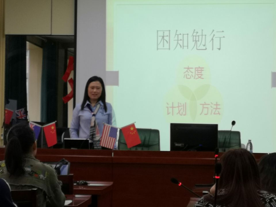 毕业后,她就以普通员工身份加入了迅达科技集团,利用自己的商务英语专业知识,带领几位员工开拓了外贸业务,建立了进出口公司,并一直担任进出口公司总经理,为迅达科技集团的国际国内贸易打下了一片天地。文丰结合自己多年的实践,把商务与翻译中的重点与难点娓娓道来,并就翻译和外贸中面临的现实问题给出了中肯的建议。最后,文丰以学姐的身份,勉励学弟学妹们做“乐观积极的人”、“达成目标的人”,掌握科学方法,苦学专业知识,不忘初心,砥砺前行。