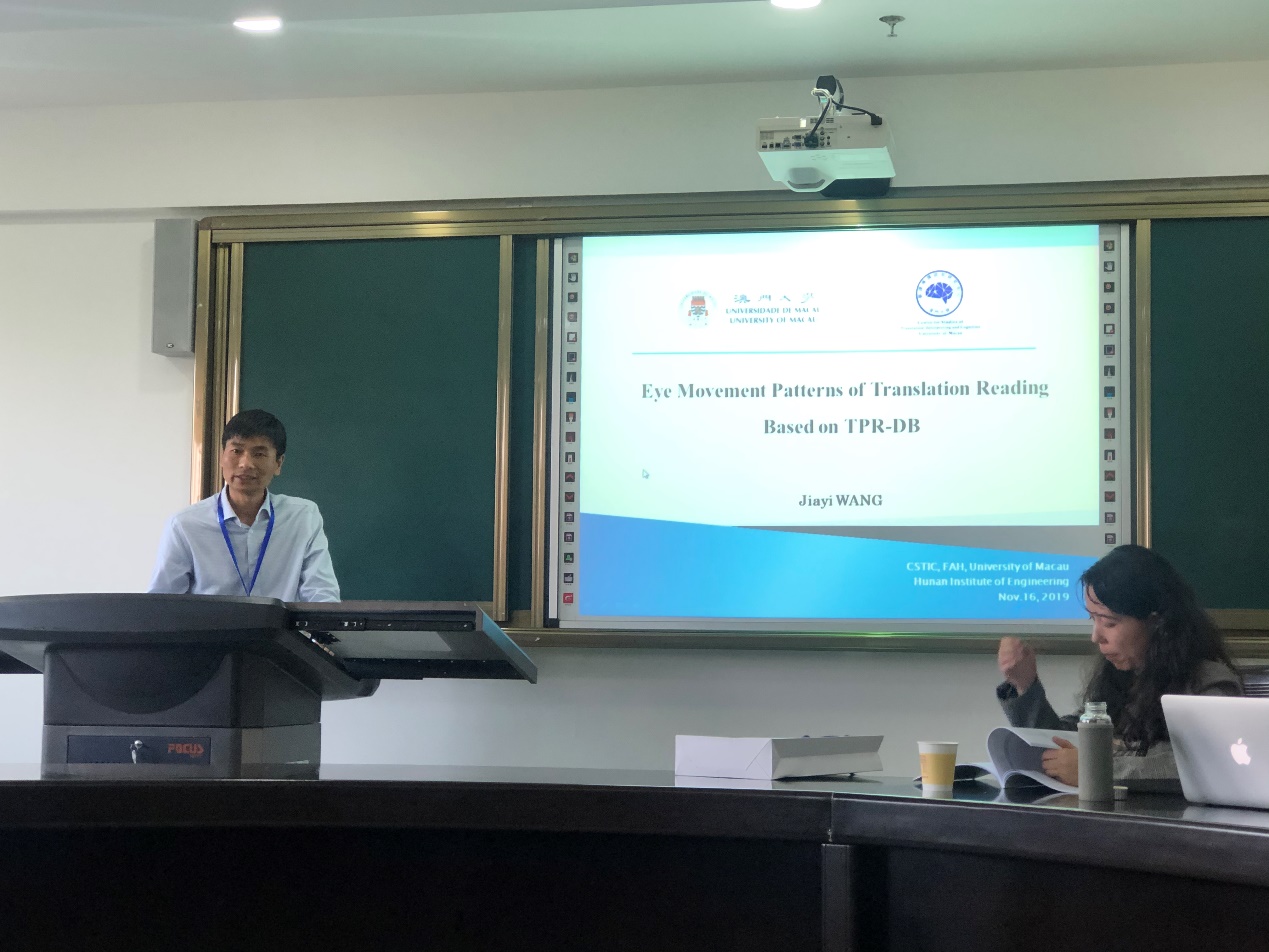 王家义副院长作了分论坛会议发言,他发言的题目是:“Eye Movement Patterns of Translation Reading Based on TPR-DB”。